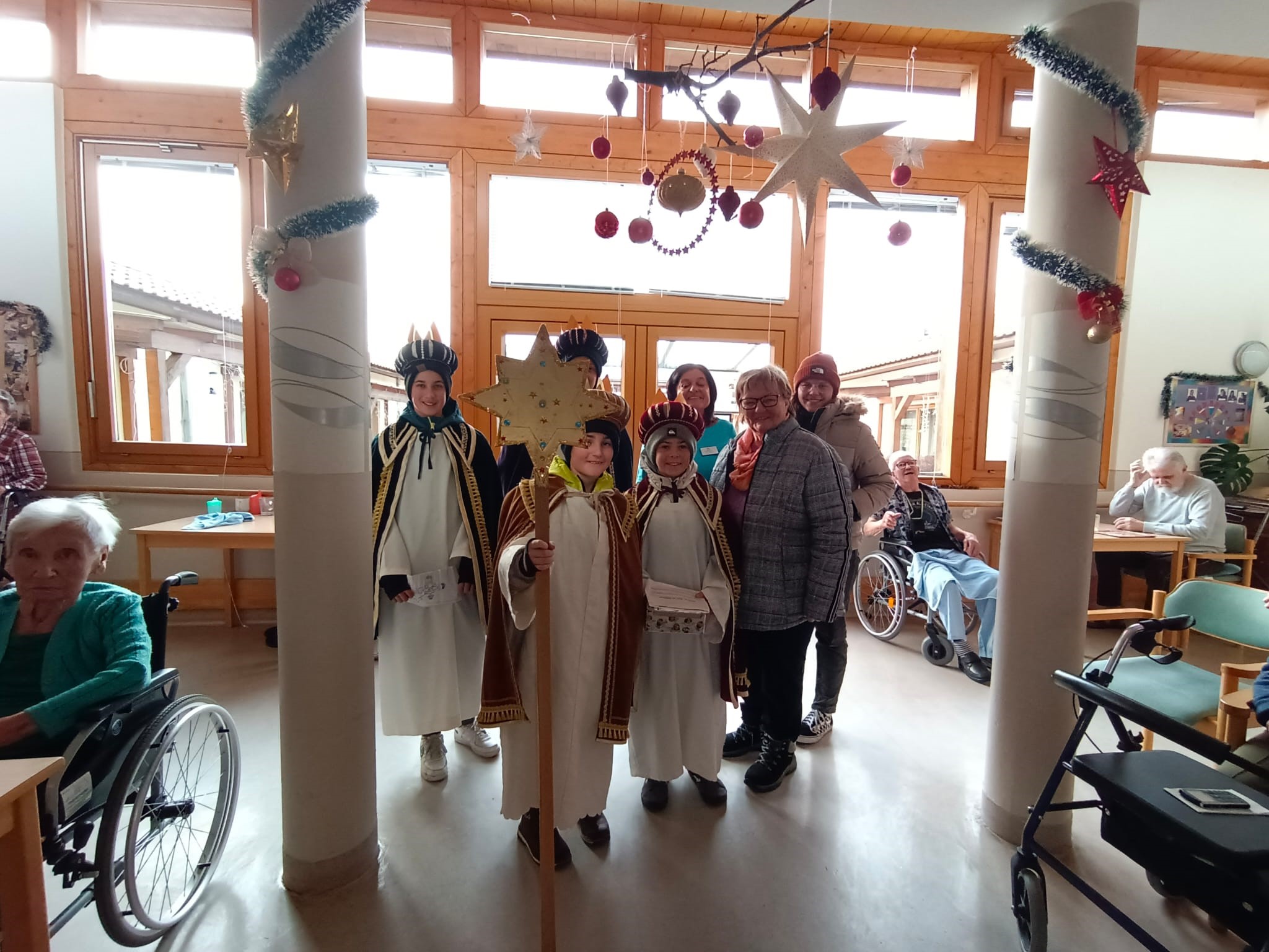 Am 2. Jänner war es soweit, Caspar, Melchior und Balthasar – die „Heiligen Drei Könige“ – besuchten mit ihrem Sternträger das SeneCura Pflegezentrum Arnoldstein und überbrachten den traditionellen Segen C+M+B. Mit klassischen Liedern, stimmungsvollen Gebeten und farbenfrohen Kostümen brachte sie gute Laune unter die anwesenden Bewohner:innen. Unsere Senioren:innen freuten sich über die Darbietung und über den mitgebrachten Weihrauch. „Es ist so schön die Sternsinger wieder zu sehen, die Gebete und Lieder waren perfekt einstudiert.“ freute sich eine Bewohnerin des Hauses.