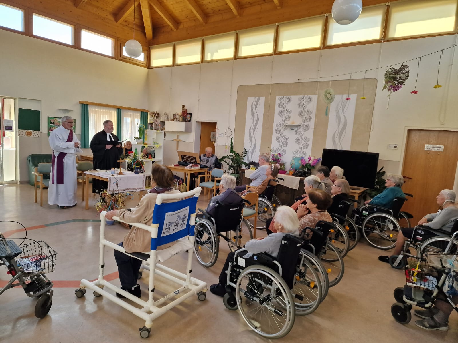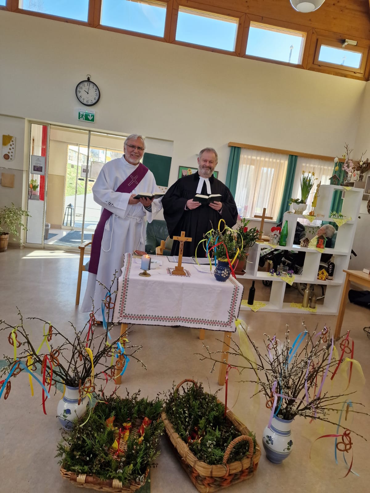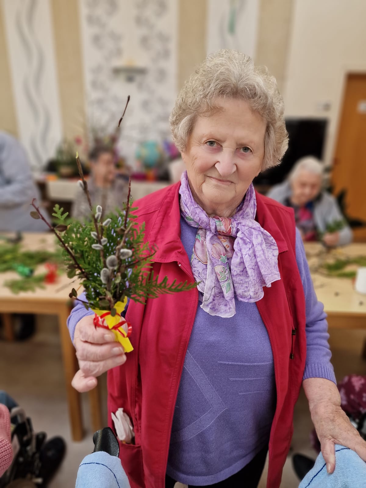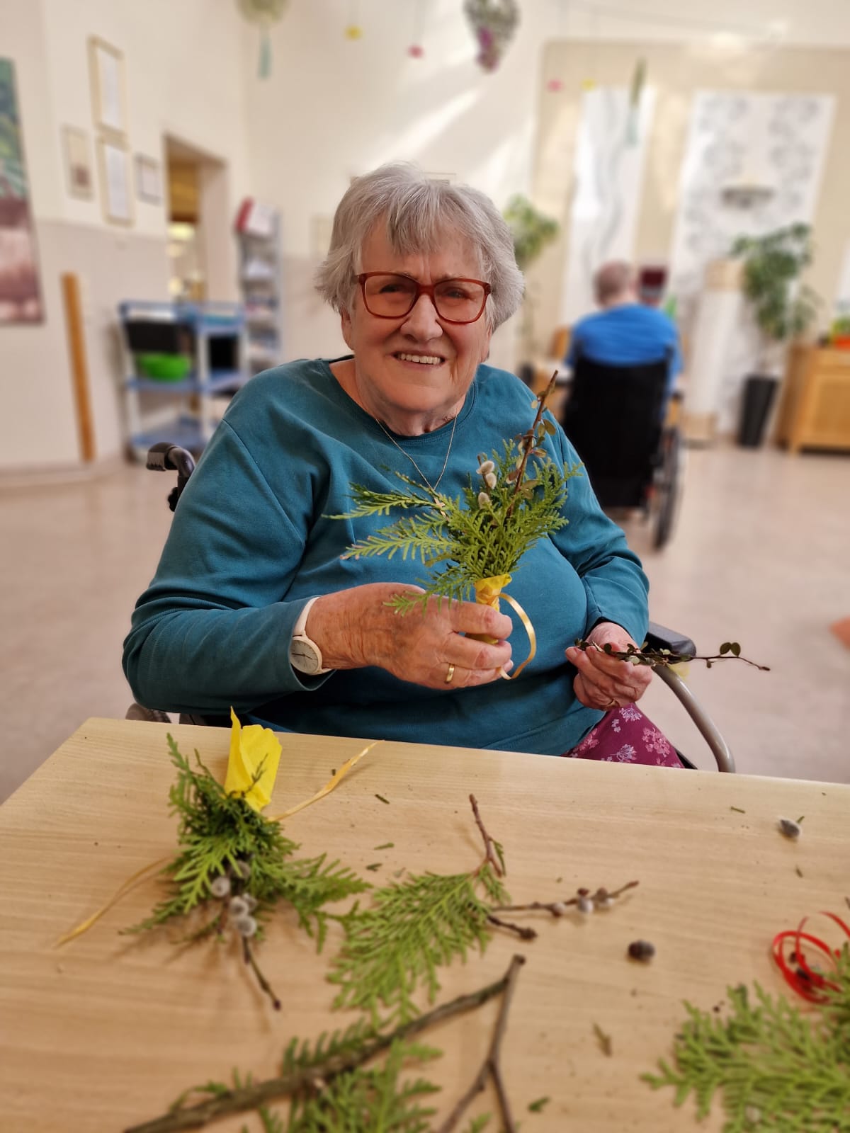 Ostern naht – und damit auch die Palmweihe. Im SeneCura Pflegezentrum Arnoldstein gehört es zur gelebten Tradition, zu diesem Anlass schöne Palmbuschen aus verschiedenen Grünzweigen und Palmkätzchen zu gestalten. Die fertig gebundenen Palmbuschen können sich auf jeden Fall sehen lassen und wurden im Rahmen einer festlichen Stunde geweiht. Die geweihten Palmbuschen schmücken nun die Räume der Bewohner:innen und alle sind sich sicher – nun kann Ostern kommen.