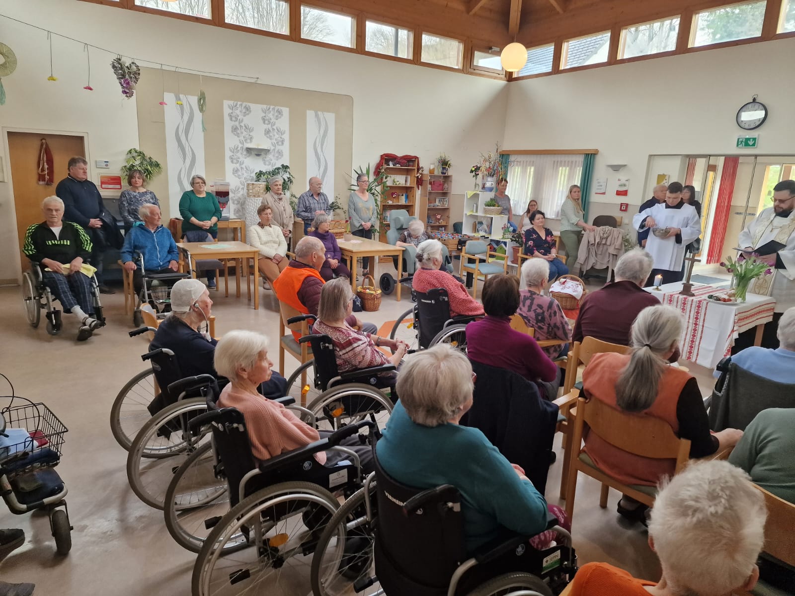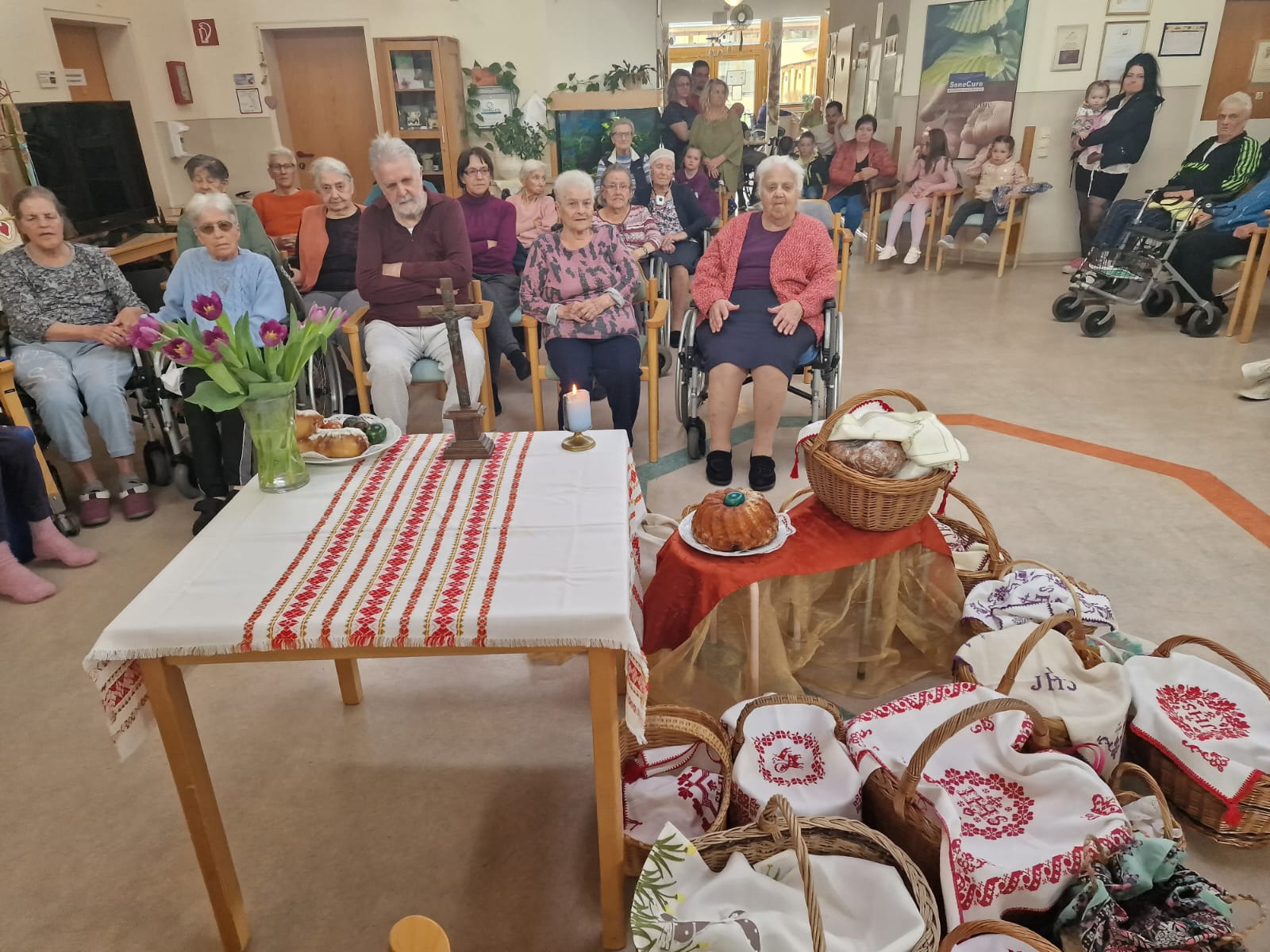 Am Karsamstag fanden sich die Bewohner:innen des SeneCura Pflegezentrums Arnoldstein im Speisesaal zusammen, um dem Brauch in Kärnten nachzugehen. Im Haus wurden die Osterspeisen gesegnet und die Nachbarn kamen auch ins Pflegezentrum und brachten ihre Körbe mit – gemeinsam feierten die Bewohner:innen bei einer schönen Andacht und konnten sich von ganzem Herzen schöne Ostern wünschen. „Da sieht und spürt man, dass wir ein Teil der Gemeinde sind – das macht Freude!“, so die Bewohner:innen.