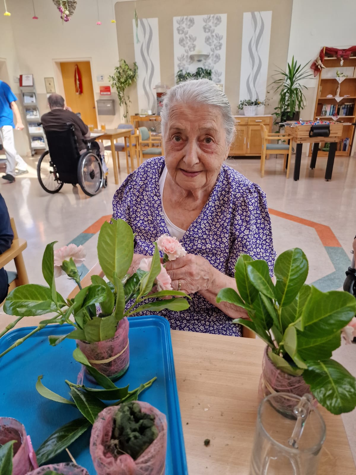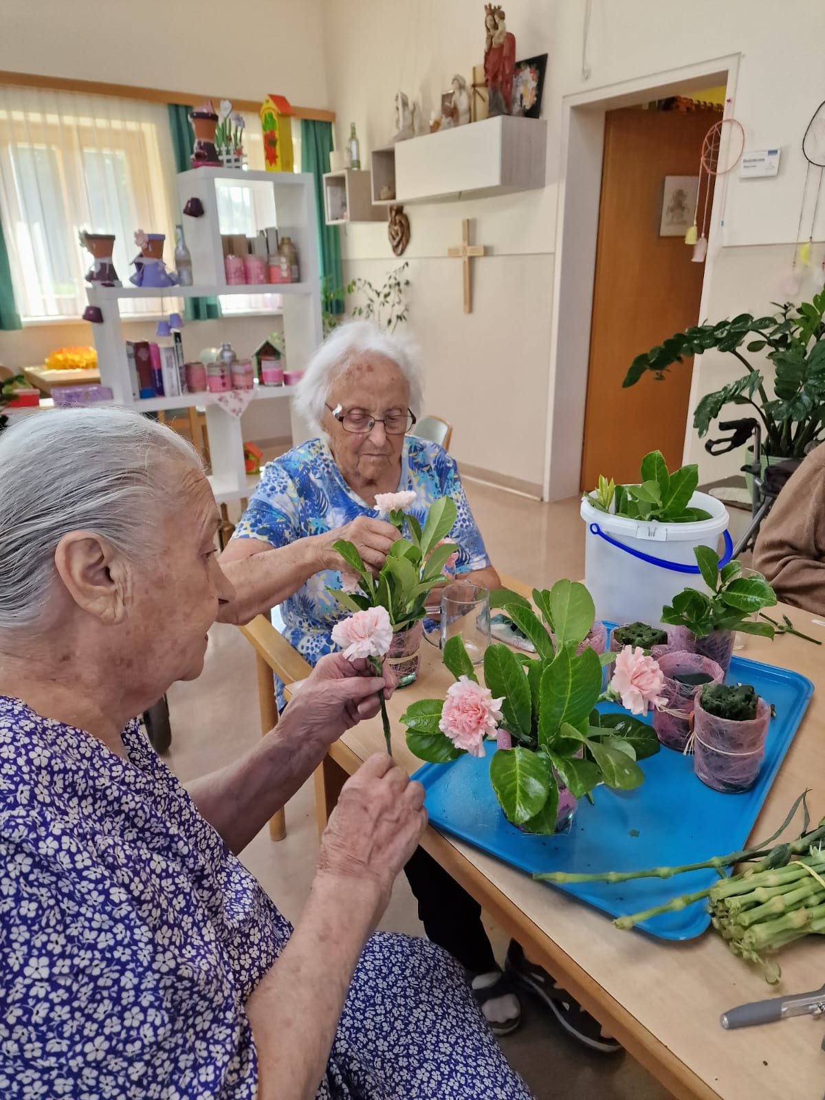 Im SeneCura Pflegezentrum Arnoldstein laufen die Vorbereitungen bereits auf Hochtouren, denn bald ist soweit: Der traditionelle Hauskirchtag steht bevor. Aktuell bereiten die Bewohner:innen den Blumenschmuck für das Fest vor: Rosafarbene Nelken und Kirschlorbeerblätter werden heuer das Fest zieren. Alle sind mit voller Begeisterung bei den Vorbereitungen dabei und die Vorfreude steigt!