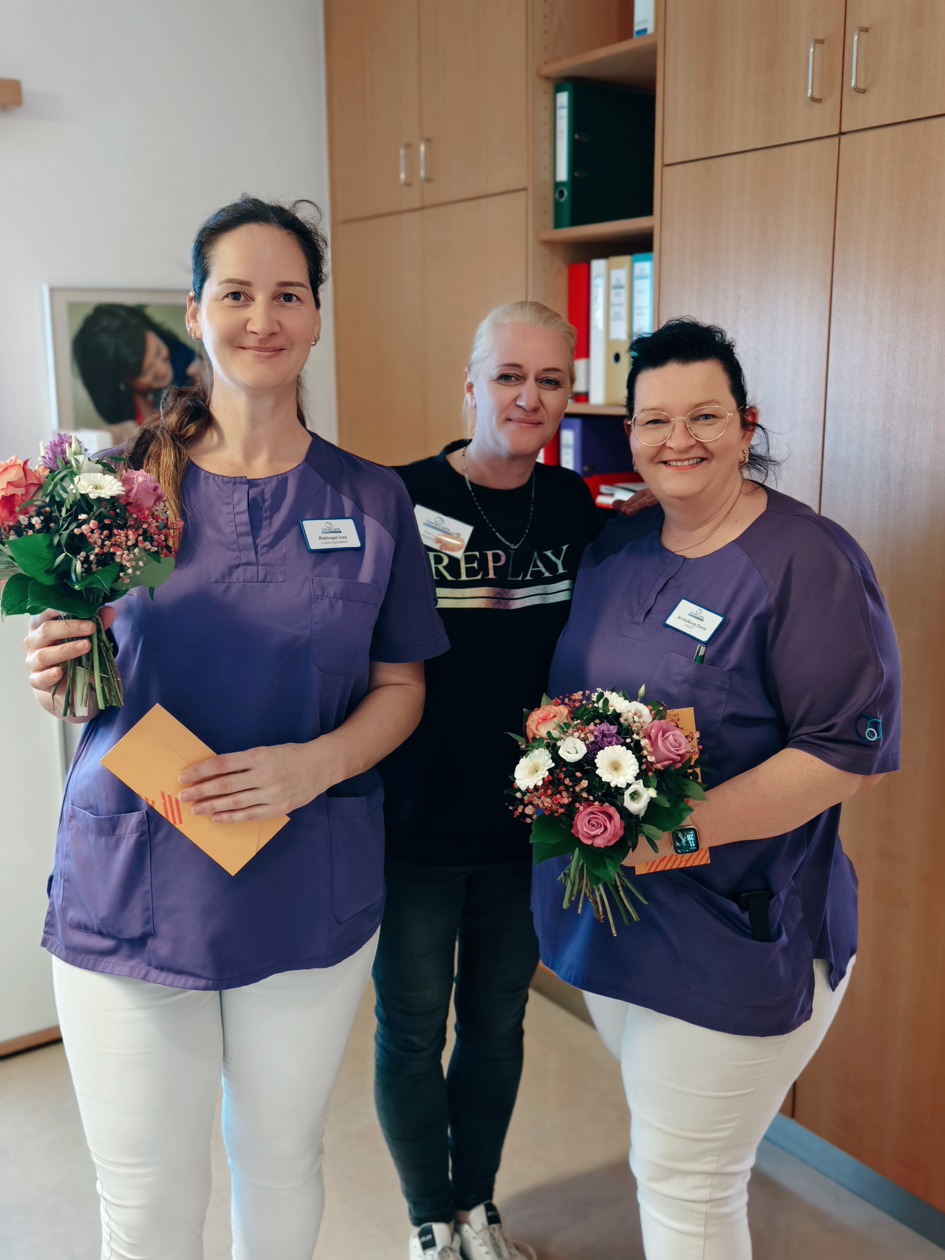 Das SeneCura Sozialzentrum Arnoldstein möchte den Mitarbeiterinnen Doris Aichelburg (50) und Ines Radinger (40) ganz herzlich zu ihren runden Geburtstagen gratulieren. Das Sozialzentrum wünscht den Jubilarinnen alles Liebe und Gute, vor allem aber Gesundheit und Glück auf ihrem weiteren Lebensweg! Für alle Jubilar:innen gibt es als Geburtstagsgeschenk einen Gutschein sowie einen tollen Blumenstrauß – und wie man sieht, es wird sich sehr darüber gefreut.