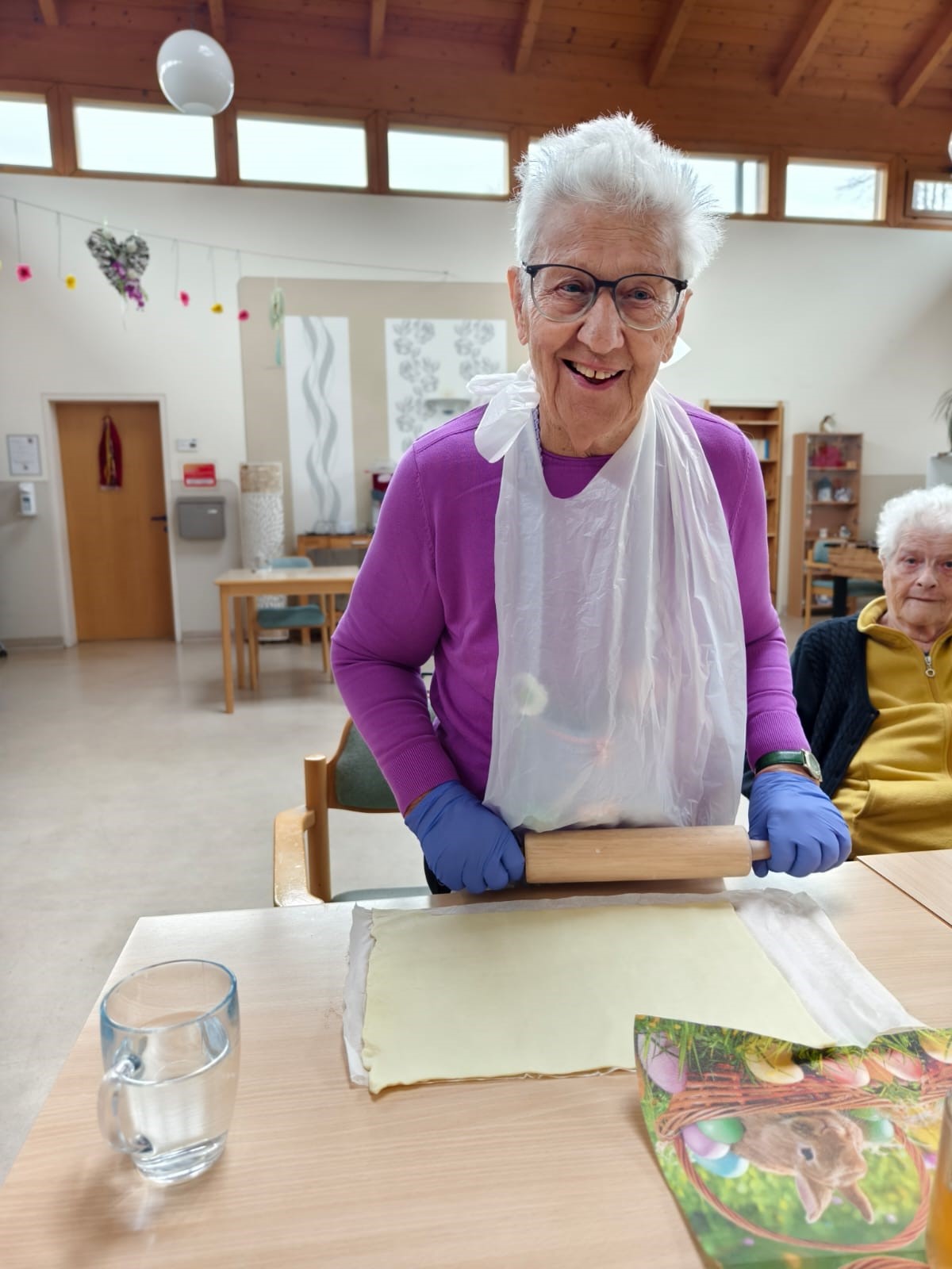 Selbstgebackene Köstlichkeiten dürfen zu Ostern nicht fehlen. Deshalb machten sich die fleißigen Bewohner:innen des SeneCura Pflegezentrums Arnoldstein unter Anleitung des SeneCura-Teams ans Werk und kreierten schmackhafte Osterhäschen. Beschwingt rührten die rüstigen Hobby-Bäcker:innen zu alten Hit-Klassikern eine Masse aus Mehl, Butter, Zucker, Ei sowie weiteren Zutaten und kneten sie zu einem zarten Teig. Dieser wurde sodann mit Osterhasenförmchen ausgestochen und schlussendlich schoben die Bäcker:innen ihre Teigkreationen in die Öfen und warteten gespannt auf das Ergebnis. „Ich glaube diese Osterhasen werden sehr lecker schmecken“, meint eine Bewohnerin des SeneCura Pflegezentrums Arnoldstein.