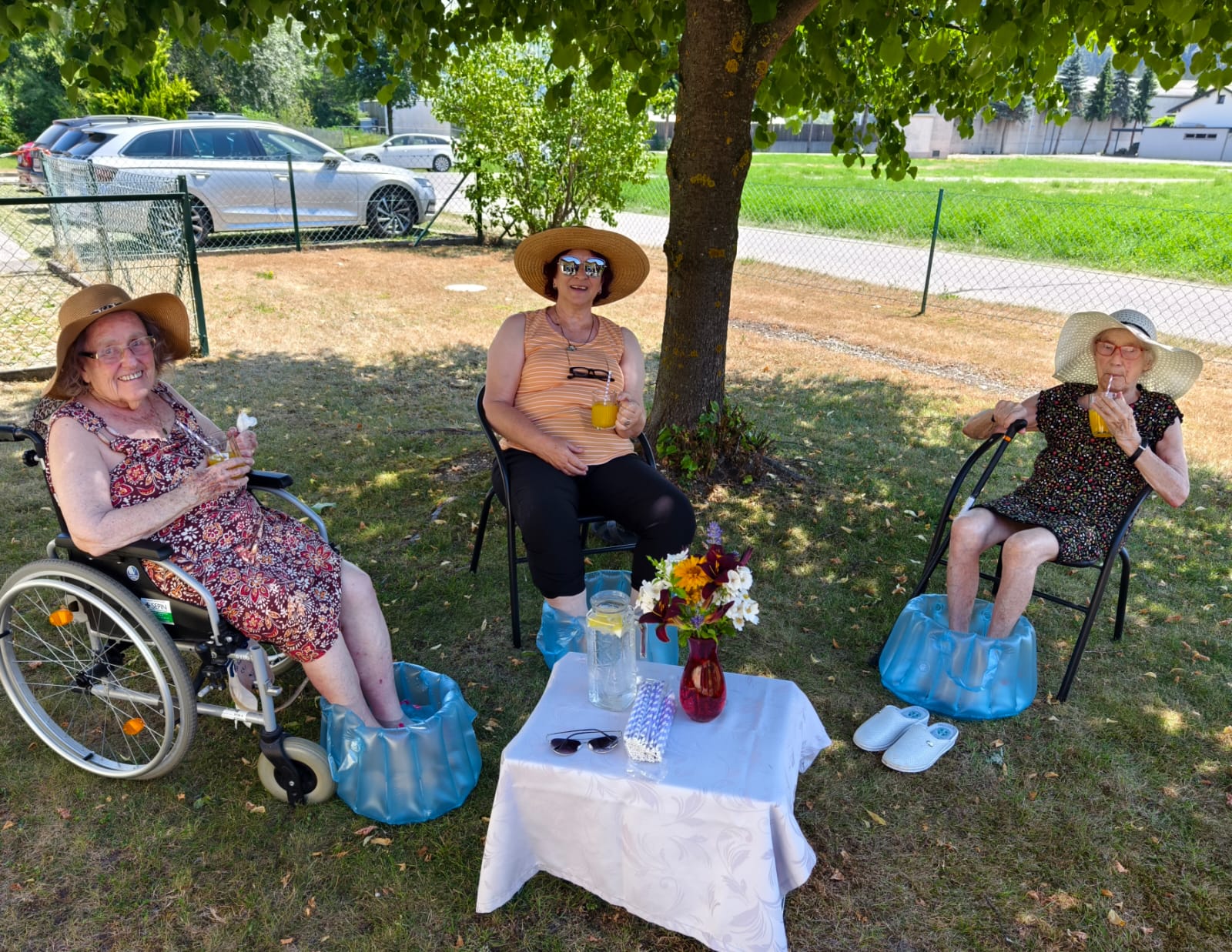 Der Sommer hat die Bewohnerinnen und Bewohner des SeneCura Arnoldstein fest im Griff. Nichtsdestotrotz finden zahlreiche sommerliche Aktivitäten im SeneCura Pflegezentrum Arnoldstein statt. So gibt es zB. kühle, erfrischende Wasserbäder für die Füße, Gartenaktivitäten in den Morgenstunden mit Sonnenhut, gestalterische Tätigkeiten im Schatten und natürlich für zwischendurch leckeres Eis.