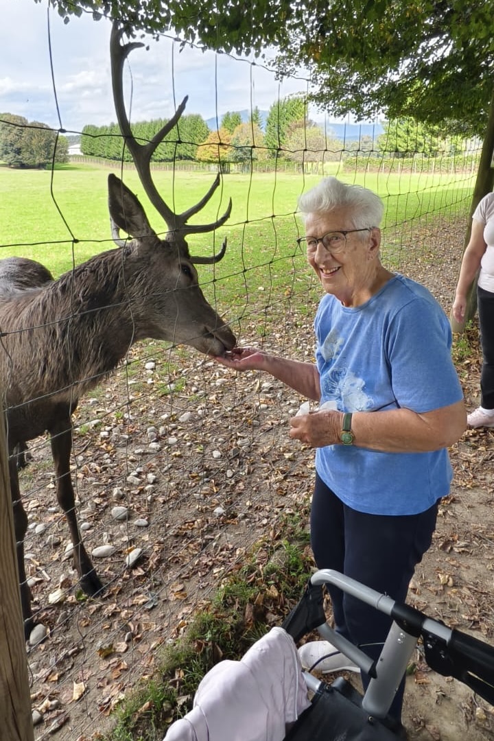 Mit großer Unternehmungslust startete die Urlaubswoche direkt vor der Haustür. Jeden Tag stand ein anderer Höhepunkt auf dem Programm. Den Anfang machte ein Besuch in Minimundus, wo die Bewohner:innen mit Staunen eine Weltreise im Kleinformat unternahmen. Am nächsten Tag ging es über die Grenze nach Italien zum beliebten Markt in Tarvis, wo nach Herzenslust geshoppt wurde – mit dem krönenden Abschluss in einer typisch italienischen Pizzeria, bei der nicht nur der Gaumen, sondern auch die Stimmung auf ihre Kosten kam. Ein weiteres Highlight war die Schifffahrt auf dem Wörthersee, die mit traumhafter Aussicht, Sonnenschein und frischer Brise Urlaubsfeeling pur bot. Tiere zum Anfassen gab es anschließend im Tierpark Rosegg, wo Lamas, Ziegen und andere tierische Bewohner für Freude und Erinnerungen sorgten. Den Ausklang der Woche bildete der Besuch am Pyramidenkogel – die atemberaubende Aussicht über Kärntens Seenlandschaft ließ so manches Herz höherschlagen. „Wir hatten wirklich eine wunderschöne Woche. So viele Eindrücke, nette Gespräche und einfach einmal etwas anderes als der Alltag, das hat richtig gutgetan“, erzählt Bewohnerin Maria Gatej zufrieden. „Besonders schön war auch, dass wir so viel gelacht haben – wie früher im Urlaub.“