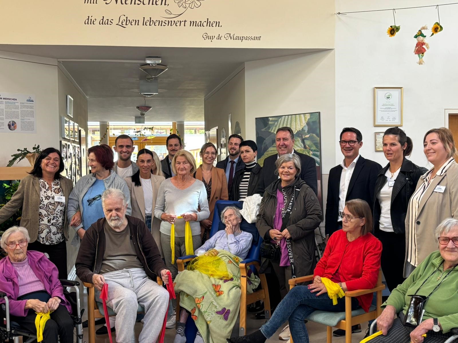 Im Mittelpunkt des Besuchs standen die Schwerpunkte der Rehabilitierenden Übergangspflege, die im Pflegezentrum mit großem Engagement und Fachwissen umgesetzt werden. Ziel dieser Pflegeform ist es, den Bewohner:innen durch eine individuelle und ganzheitliche Rehabilitation den bestmöglichen Weg zurück in ein selbstständiges Leben zu Hause zu ermöglichen.