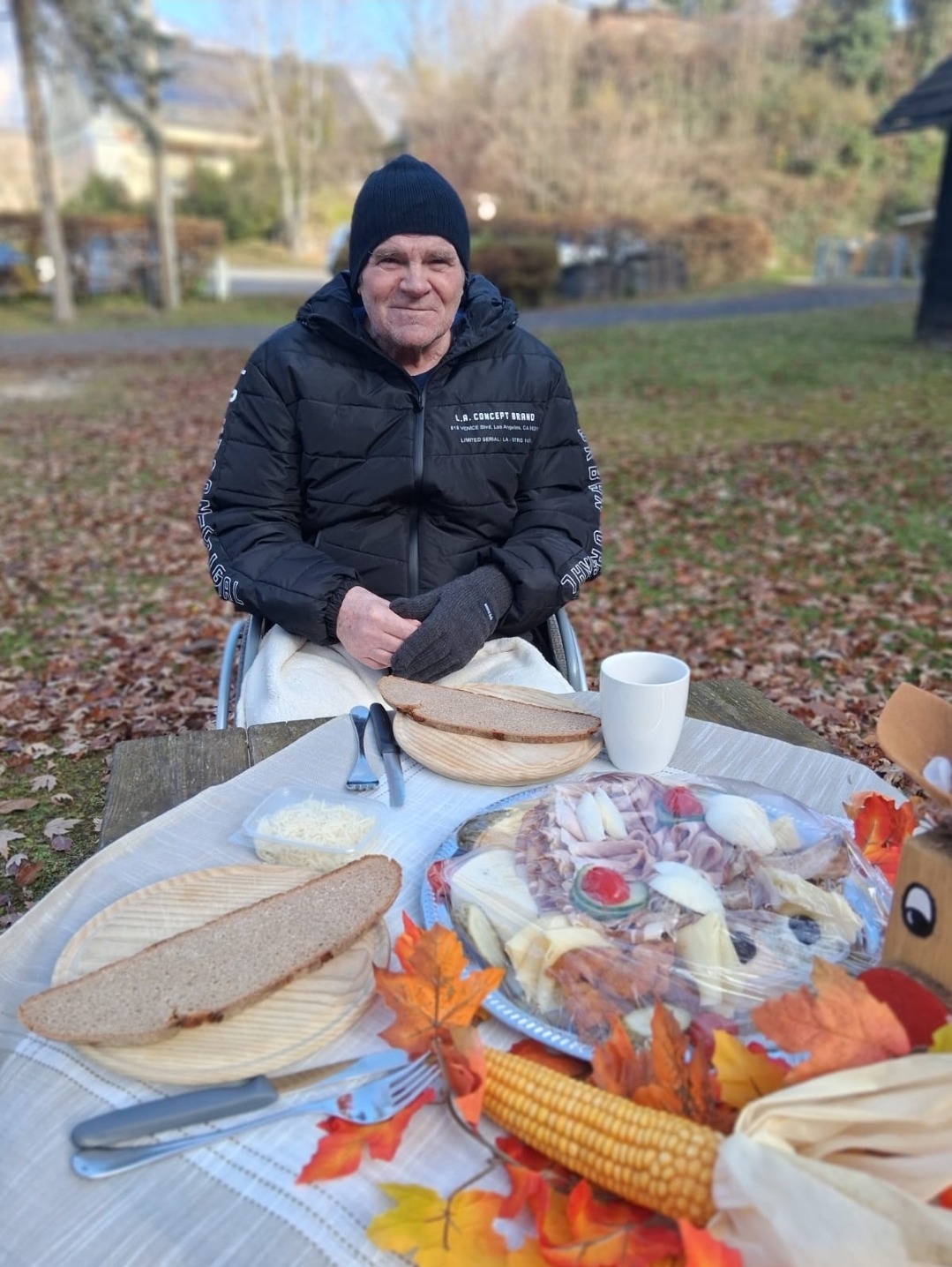 Kürzlich erfüllte sich für Herbert Koller, Bewohner des SeneCura Pflegezentrums Arnoldstein ein ganz besonderer Wunsch. Er wünschte sich einen netten Herbstspaziergang mit anschließender Jause. Gesagt – getan. Pflegeassistentin Marlies Obergantschnig packte einen Korb voller Leckereien und los ging es. „Was für ein Traum! Ein Spaziergang durch den goldenen Herbst, die Sonne scheint, die Blätter rascheln… und dann eine gemütliche Bretteljause in einer entspannten Atmosphäre eines Heurigen im Park. Einfach super! Ein Glas süßen Most und eine Tasse feinen Punsch dazu, und das Leben ist schön!“, so Herr Koller.
