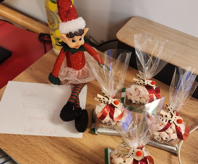 In der Adventszeit ist unser Weihnachtswichtel Olaf wieder im SeneCura Pflegezentrum Arnoldstein eingezogen und begleitet unser Team durch die vorweihnachtlichen Wochen. Mit lustigen Streichen, liebevoller Dekoration – sogar in unseren Büros – und kleinen Überraschungen sorgt Olaf immer wieder für ein Schmunzeln und gute Laune. Der fröhliche Wichtel bereitet Bewohner:innen und Mitarbeiter:innen viel Freude und ist aus unserer Adventszeit nicht mehr wegzudenken.